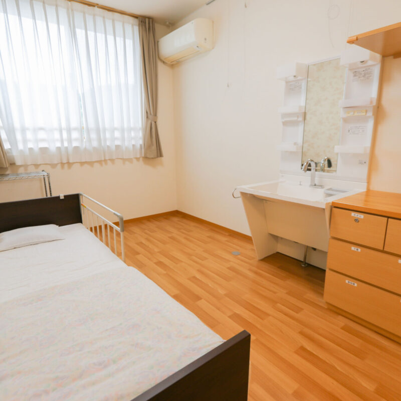 居室は十分なスペースがあり、介護ベッドを置いても車椅子が余裕を持って室内を移動できます。